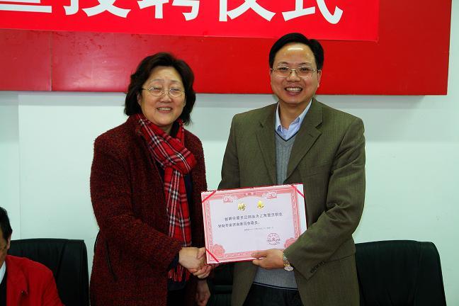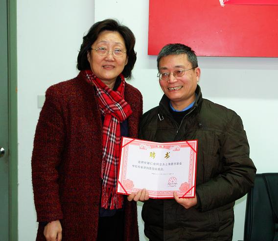 院长杜飞龙教授主持成立暨授聘仪式。董事长张惠莉代表学院致欢迎辞,杜院长宣读《关于成立专家咨询委员会的通知》文件,授予杨德广教授为我院专家咨询委员会主任,上海商学院副院长冯伟国教授、上海教科院高教研究所所长研究员谢仁业、上海东海职业技术学院院长项家祥教授、上海市教育科学研究院民办教育研究所所长董圣足博士为我院专家咨询委员会委员。董事长张惠莉向专家们颁发聘书。