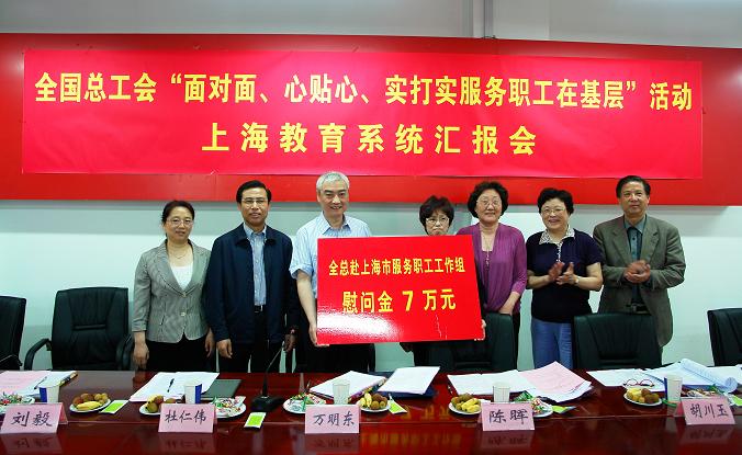 全总工作组组长万明东主持召开了“面对面、心连心、实打实服务职工在基层”活动上海教育系统汇报会。上海市教育工会主席夏玲英汇报了上海教育系统开展工作的情况;天博com体育网站党委副书记、工会主席夏臻就落实活动,“加强民主管理,履行维权职能,构建和谐校园”情况作了汇报;董事长张惠莉也就保障职工利益所作的工作和民办教育系统存在的困难和希望解决的问题做了发言。