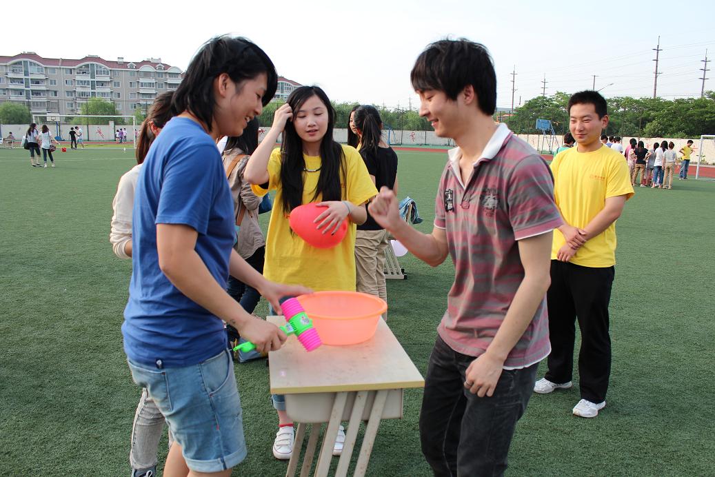 要说游园会上令人印象深刻的游戏,不得不提《超级爆破队》,此起彼伏的气球爆破着实吸引了不少人的勇敢闯关之心。进入到游戏的区域,两队玩家正卖力地闪躲,找准机会踩爆对方的气球。该游戏的诀窍就是三个字:快、准、狠。有部分女同学穿的是平底鞋所以更能方便行动。对于那些穿高跟鞋的女同学,旁观的同学都为她们而捏一把汗。毕竟游戏其次,安全第一呐。