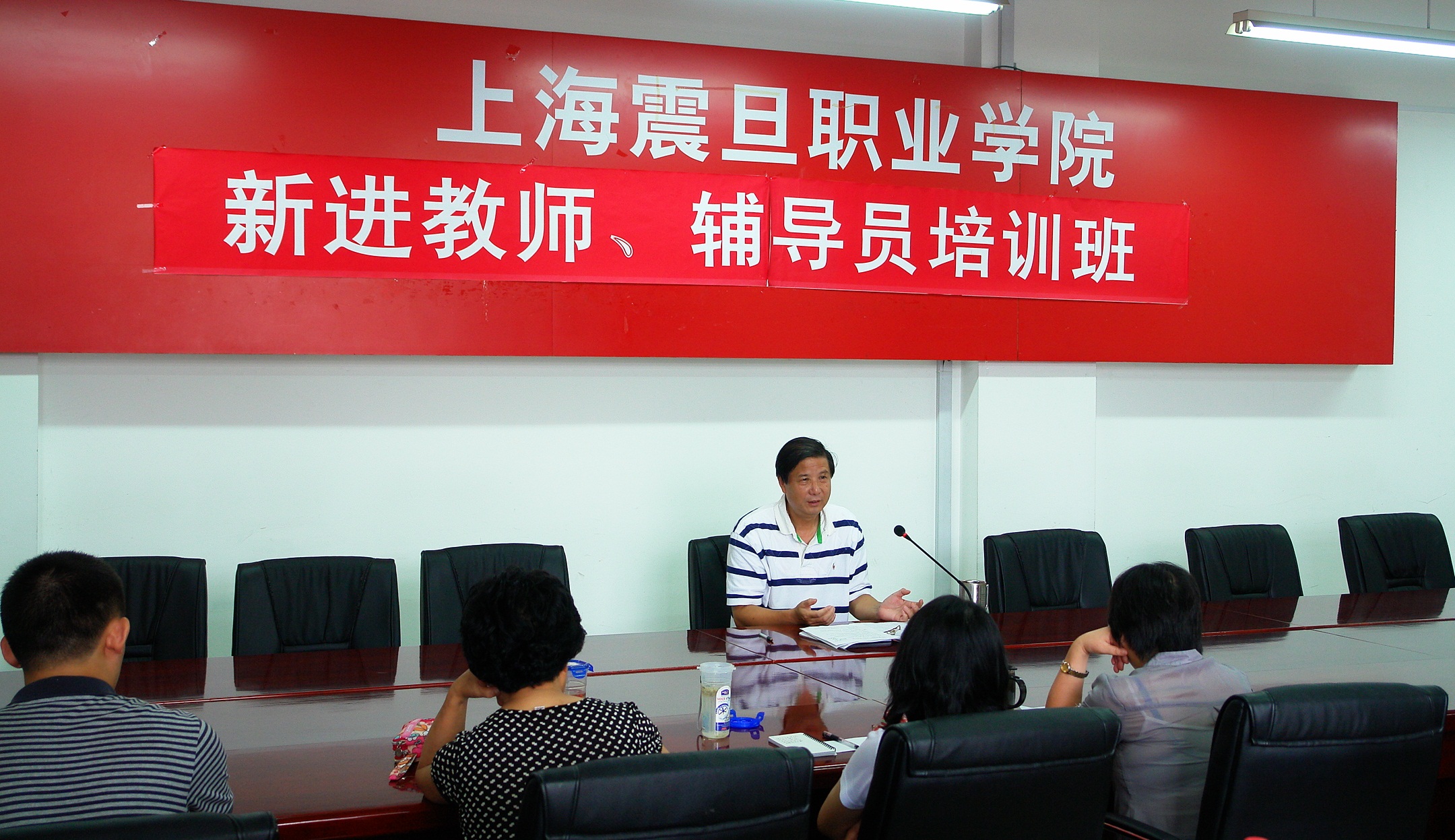 2012年9月4日,新进教师、辅导员培训班在我院会议室举行。图为院长杜飞龙为新进教师作培训。