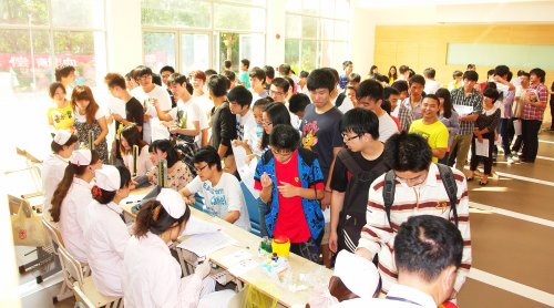 2012年9月25日,一年一度的无偿献血活动在我院体艺楼一楼举行,我院学生踊跃报名,奉献爱心。
