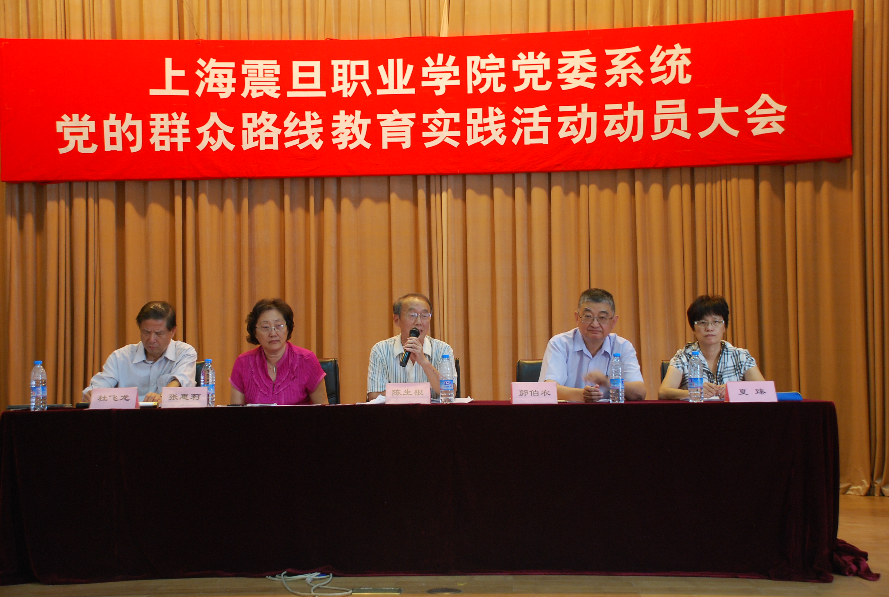 9月18日下午,天博com体育网站党委在鲁班路集团大礼堂召开党的群众路线教育实践活动动员大会,对系统内教育活动进行安排部署。学院教育实践活动领导小组组长、党委书记郭伯农作了动员。上海市民办高校党工委党的群众路线教育实践活动第二督导组组长陈生根出席会议。学院教育实践活动领导小组副组长、党委班子成员、董事长张惠莉,工作组组长、党委副书记夏臻以及全体党员、民主党派、入党积极分子代表共计100余人参加了会议。学院教育实践活动领导小组组长、党委副书记、校长杜飞龙主持动员会。