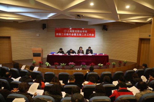 1 月 19 日上午 9 : 00 ,我院四届二次教代会暨五届二次工代会在体艺楼一楼报告厅召开。董事长张惠莉、党委书记郭伯农、院长杜飞龙、副书记夏臻、党建督察员黄晞建等领导出席会议,部分教职工代表和列席代表参加了此次会议。