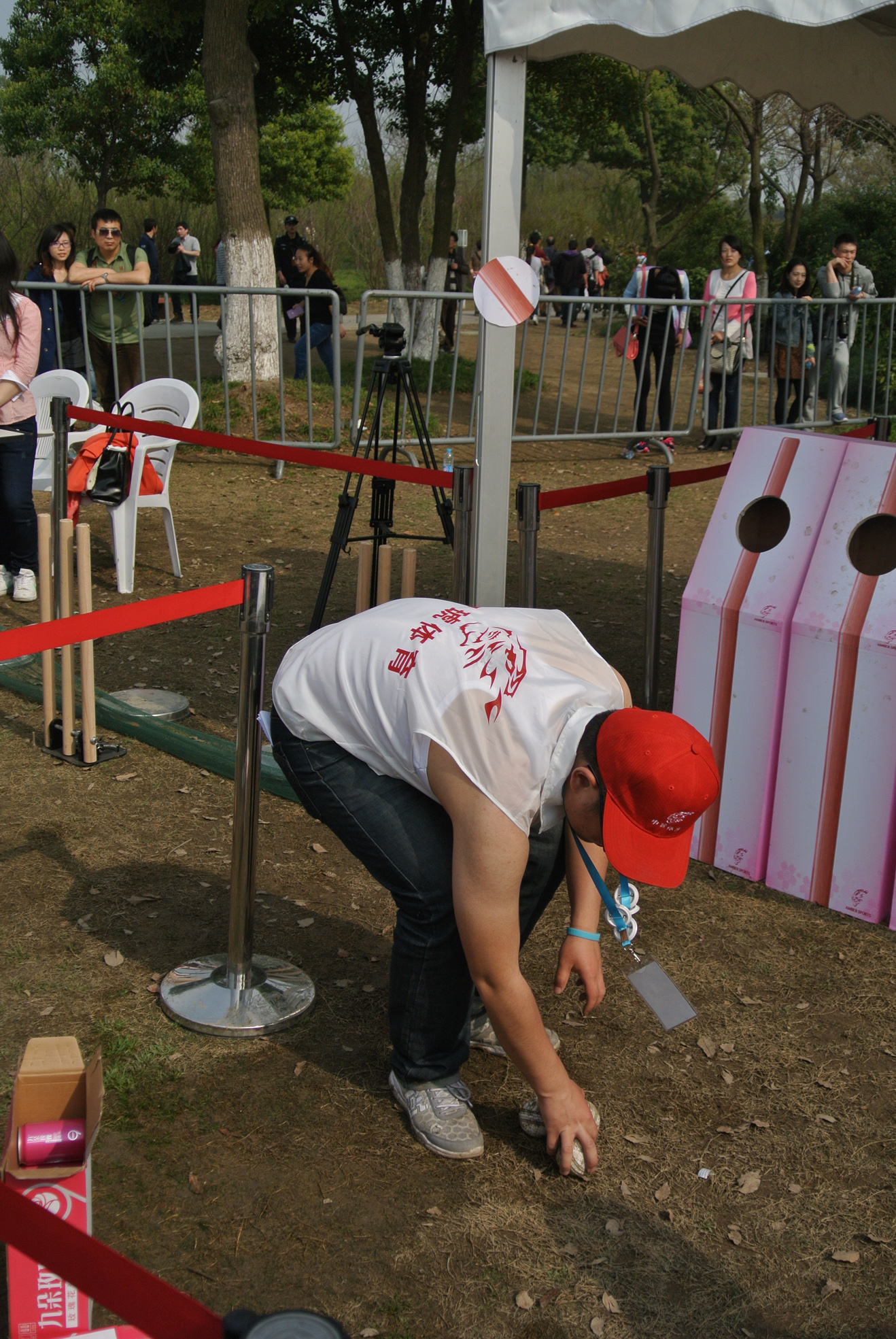 踏着晨曦,志愿者们7点就已到达顾村公园,沿着落英缤纷的樱花大道前往活动服务场地——阳光草坪。30名志愿者被分配在园区作为领队助理,配合领队组织活动,包括登记成员信息、填写抽签卡、收发身份证、辅助游戏环节,跟随着组员们在顾村公园。20名志愿者主要负责外场的游乐区,辅助活动参与者完成游戏环节。
