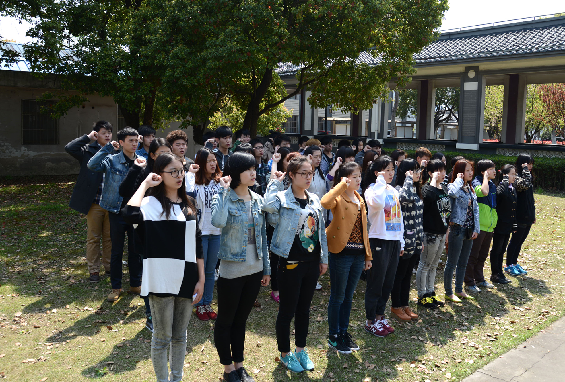 庄严的纪念碑前,全体同学进行了默哀仪式。总支书记江桂梅老师向大家介绍了罗店抗战殉难烈士纪念碑的来历以及革命先烈的英雄事迹,随后老师和全体学生向革命先烈敬献鲜花,以寄托对革命先烈的哀悼之情。接着由入党积极分子2012级艺术1班的宋超同学发言,他的讲话让同学们感触颇深。在辅导员徐磊老师的带领下,全体同学举起右手,面向纪念碑庄严宣誓,把扫墓活动的气氛推向了高潮。最后本次活动在嘹亮的国歌声中结束。