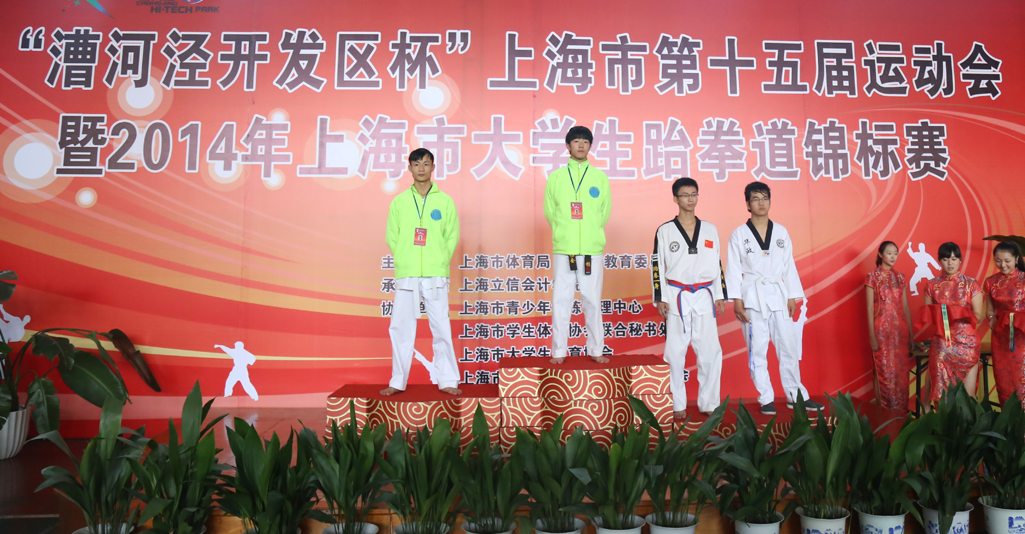 2014 年 10 月 25 日 ,“漕河泾开发区杯”上海市第十五届运动会高校组暨 2014 年上海市大学生跆拳道锦标赛在上海立信会计学院拉开了帷幕。本次大赛由上海市体育局、上海市教育委员会主办,上海立信会计学院承办。全市共有21 所高校参赛,经过两天的激战,我校跆拳道代表队在徐磊老师的带领下取得了优异的成绩!