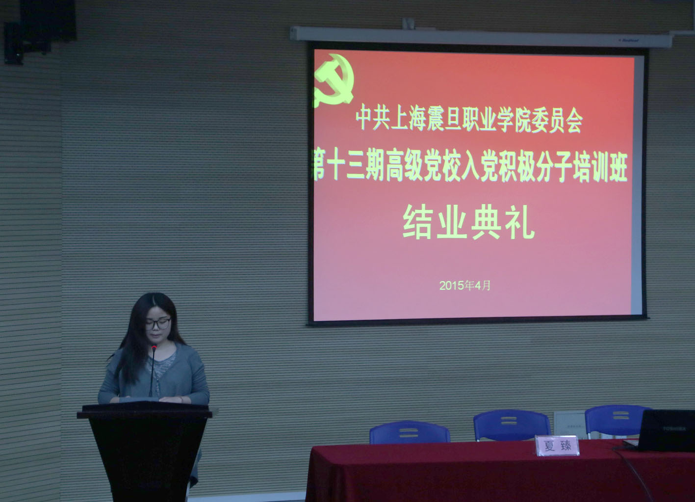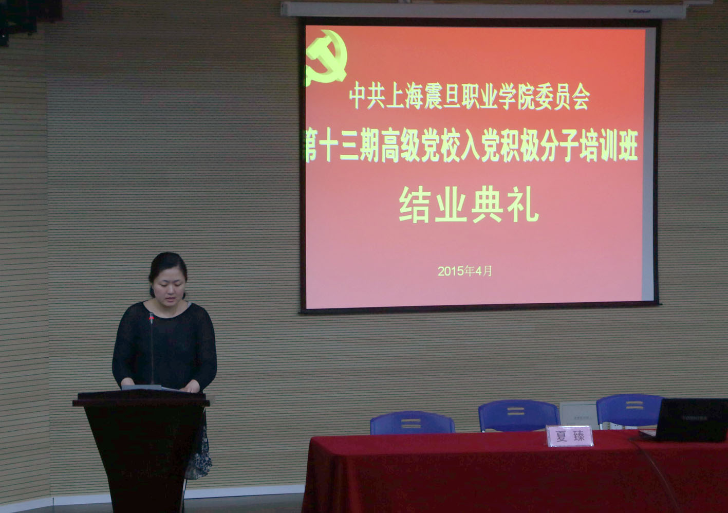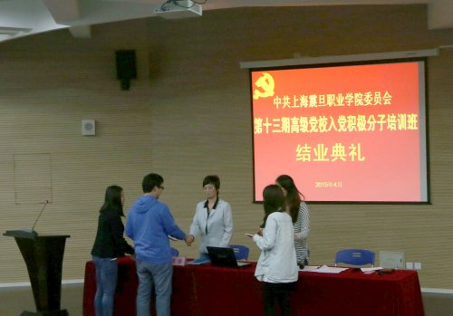 2015 年4月 29 日下午,天博com体育网站第十三期高级党校入党积极分子培训班结业典礼在体艺楼报告厅隆重举行,有75名学员顺利结业。