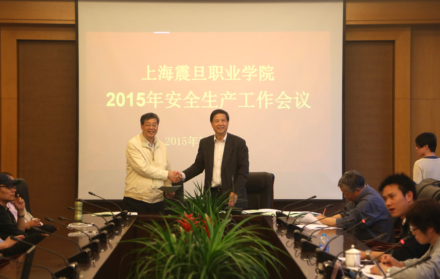 2015 年 5 月是全国第 14 个安全生产月,今年的主题是“加强安全法治 ,保障安全生产”。 5 月 11 日下午,我校 2015 年安全生产工作会议在国际会议中心会议室召开,会上进行了 2015 年度二级安全生产责任书签约仪式。学院党政领导、各二级学院、各职能部门主要负责同志出席签约仪式,会议由保卫处副处长金周伟主持。