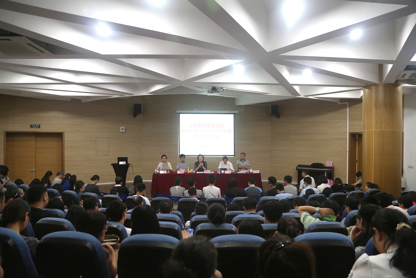 9 月 6 日上午 9 : 00 ,我院 2015 至 2016 学年第一学期教学工作会议在体艺楼报告厅召开。 董事长张惠莉、党委书记、副院长黄晞建、院长、党委副书记杜飞龙、副院长刘彬、院长助理张沈出席。全体专兼 职教师、辅导员、机关部处室管理人员参加了会议,会议由党委书记黄晞建主持。