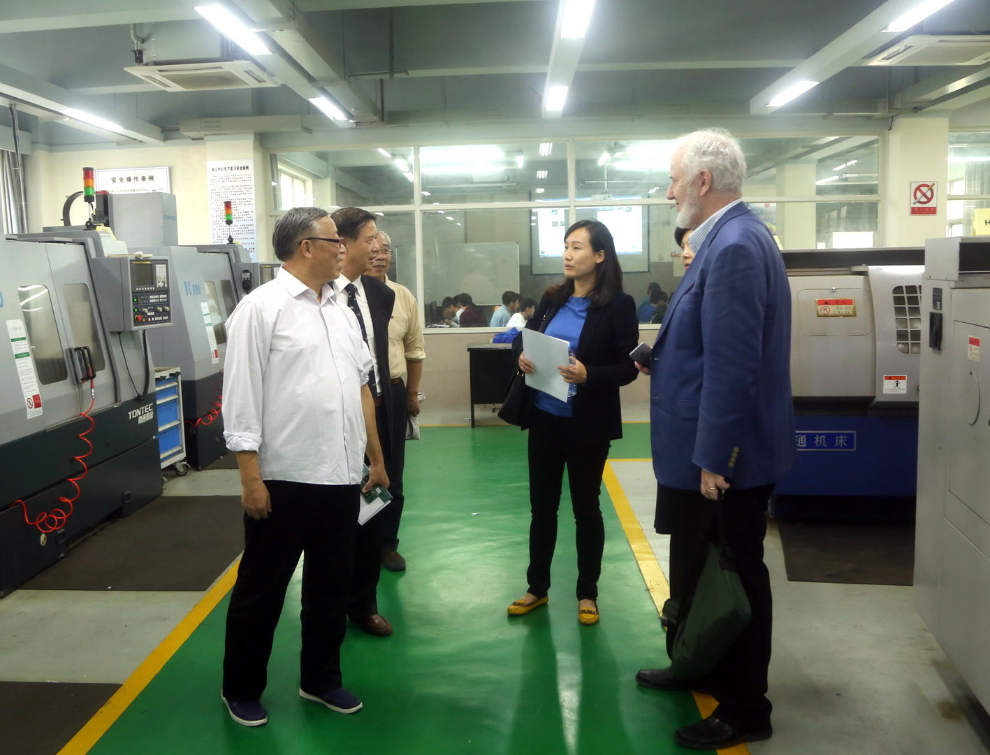 期间Dr. Donaldson教授还参观了我院的校园环境、物联网技术专业实训室和机电一体化实训室等多个实训中心,并给予了高度评价,表示希望与我院建立长期的合作关系。张惠莉董事长表示,物联网专业只是与美国加州浸会大学合作的开始,今后我院国际交流学院将与CBU继续开展深度合作,探索“3+2”或“3+1+1”等多种合作模式。震旦学生到与我院合作的大学去深造,合作院校学生来震旦访学将成为常态。