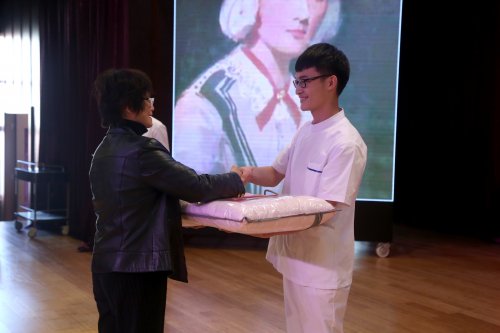 院党委副书记夏臻老师代表院领导讲话。首先,她结合自身职业体验向同学们描述了自己的白大褂情怀;她说,护士的礼仪至关重要,优美良好的仪容仪表及专业形象能够促进当代医患关系和谐发展的重要因素之一。夏书记最后激励同学们在今后的学习中要不断丰富自己的专业理论知识和熟练的操作技能,保持得体的护士礼仪,争取早日成为一名合格的准白衣天使。
