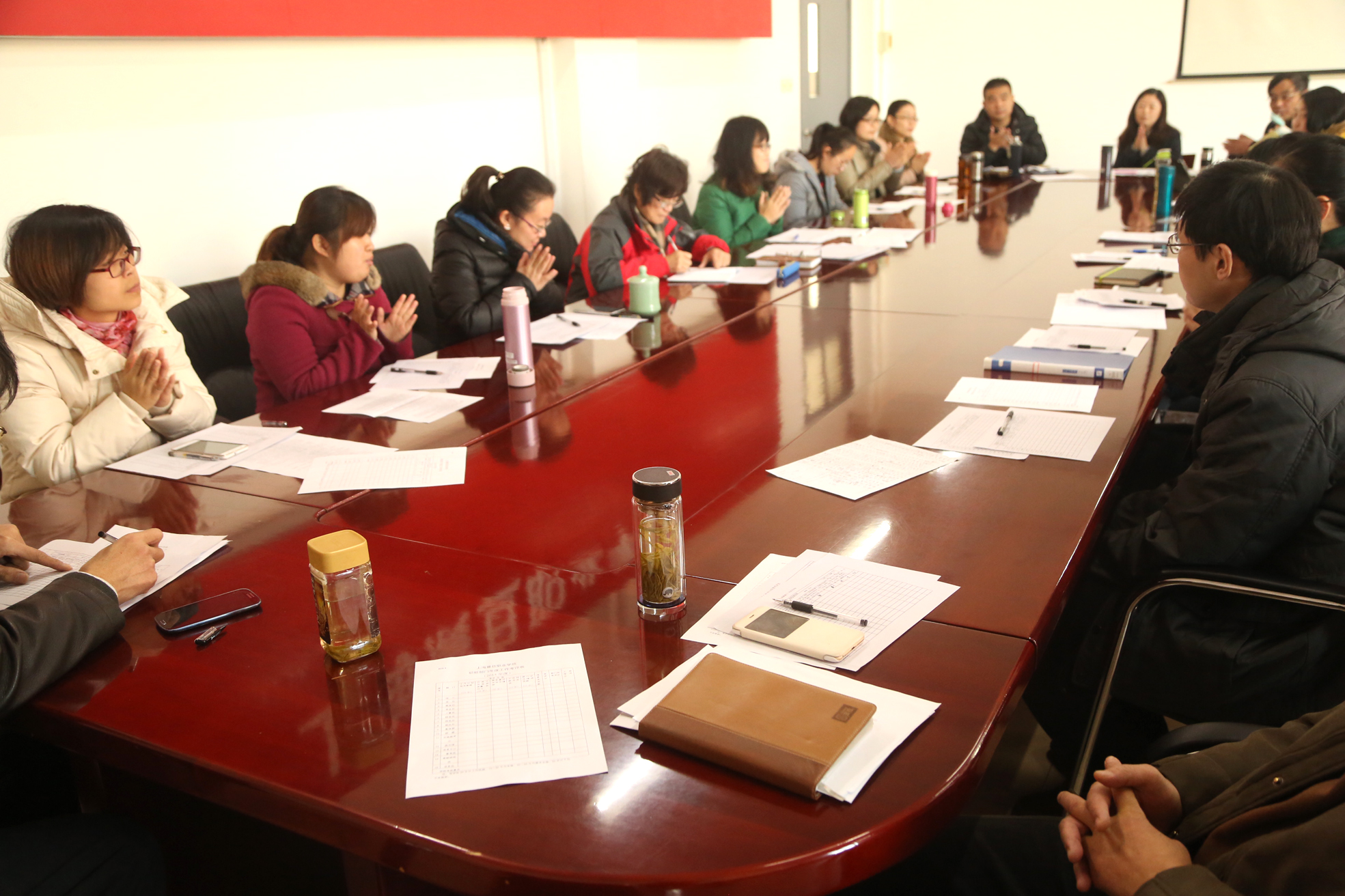 院党委副书记夏臻作总结发言,她首先肯定对各部、处、室管理人员在我院部门人少、工作量大的大环境下围绕2015年学校中心工作——“质量年”所取得的成绩给与了肯定,同时也提出了我院管理工作中仍存在有待提高的空间。她指出:1.要进一步提升作为一名管理干部的自身素养,包括政治素养与业务素养。2.要进一步加强创新意识,各管理人员不单单是事务性工作的执行,更应有所创新,起参谋作用。3.要进一步完善各部、处、室的管理制度,规范管理,提升服务能力。4.要进一步加强各职能部门的互相协调,发挥团队作用,互相支持,互相补台,形成合力,共创震旦美好明天!