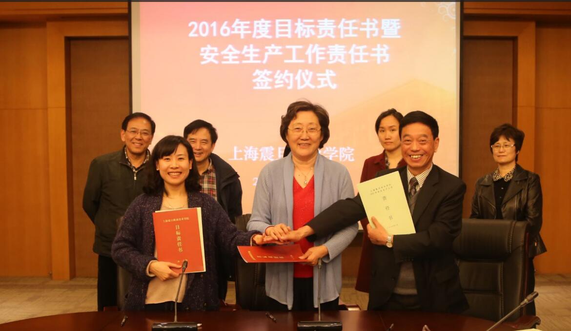4月11日,我院在体艺楼会议厅举行了2016年度目标责任书签约仪式。上海震旦教育发展基金会理事长张惠莉、天博com体育网站董事长张沈、院长陈力华、党委书记黄晞建党委副书记夏臻等党政领导出席了本次签约仪式。张惠莉理事长、陈力华院长、黄晞建书记分别与各二级学院和职能部处室签订目标责任书。人事处长虞蓓蓓主持签约仪式。
