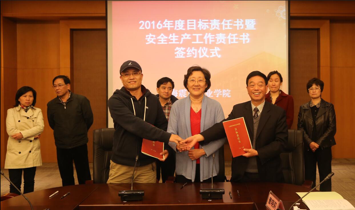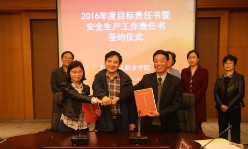 陈力华院长在签约仪式前强调了目标责任管理的重要性,指出此次目标责任书的签订,是按照学院十三五规划分解到2016年所需要完成的绩效考核管理办法。目标责任书中各项考核指标的拟定,由学院考核领导小组牵头,与二级学院及各处室充分讨论后制定的符合我们学院实际情况的考核管理办法。陈院长重点讲解了目标责任书中的几个重要指标及针对目标责任书上的条款,年底考核时需要提供的佐证材料等,更指出,此次签订是为了更进一步明确任务、落实责任、推动二级学院及各处室各项工作全面落实的务实举措。