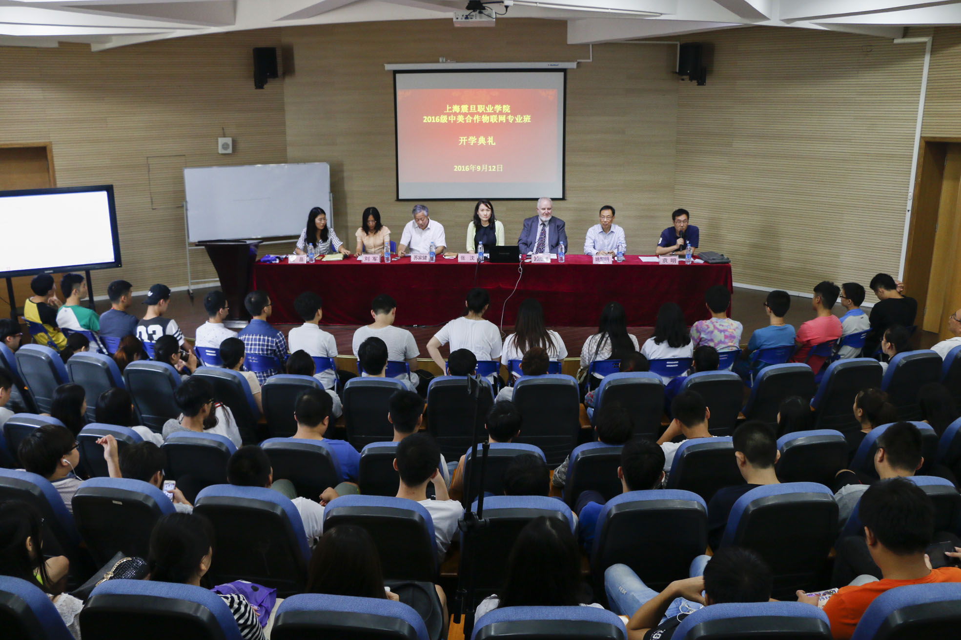 丹桂飘香的朗朗金秋,机电学院又迎来了一个开学季。9月12日下午,来自五湖四海的莘莘学子怀着对大学的憧憬,齐聚天博com体育网站体艺楼一楼报告厅,天博com体育网站董事长兼副院长、中美合作项目负责人张沈老师、美国浸会大学工程学院Dr.Donaldson、机电工程学院院长苏家健教授、副院长姚黎明教授、国际交流学院院长兼基础部主任刘军老师、国际英语教研室副主任王斌老师出席了2016级中美合作物联网专业新生开学典礼,开学典礼由袁明老师主持。