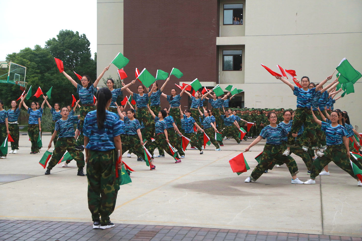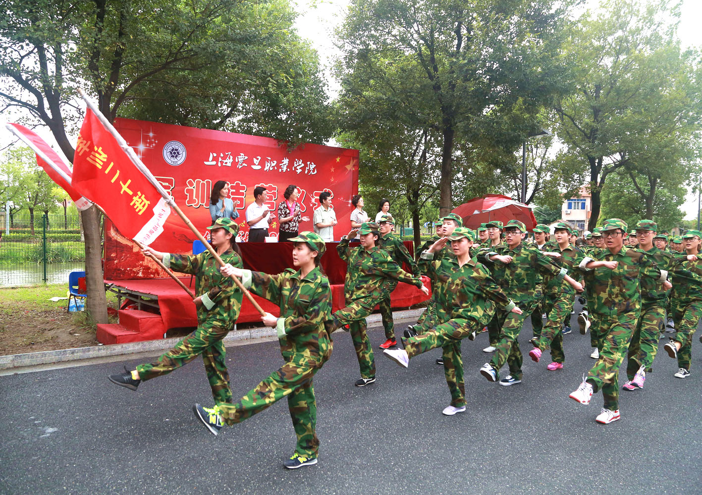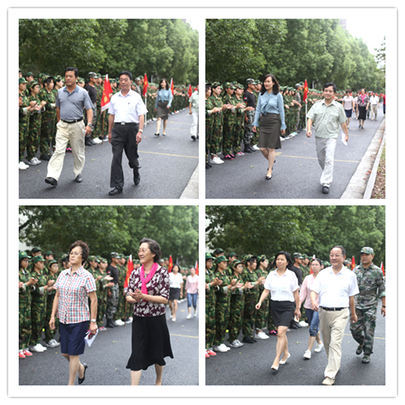 参加军训的全体新生按照军训的编队序列,排列成21个整齐的方队,以迎接学院党政领导的检阅。陈力华院长检阅了各军训方队。