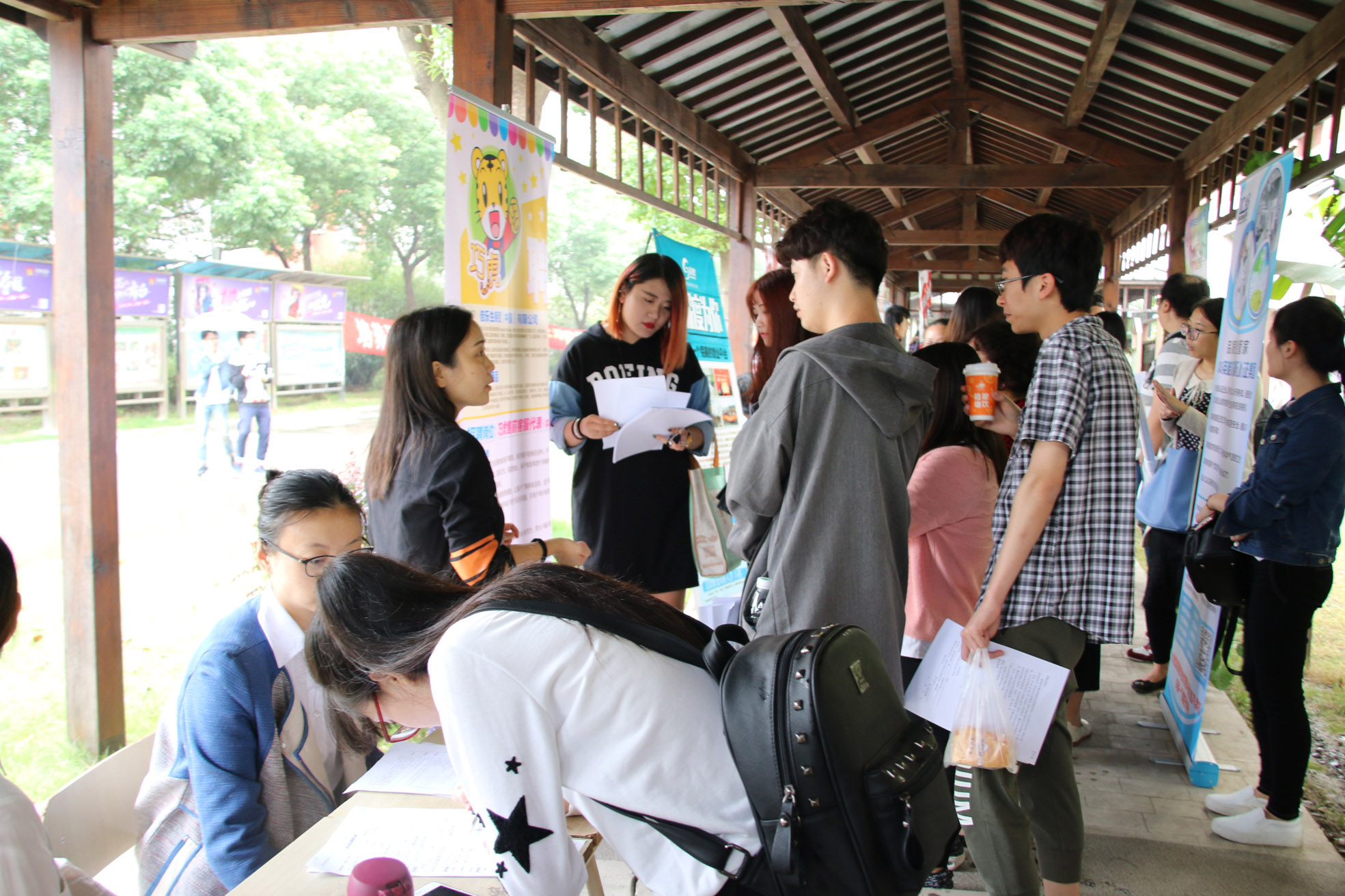为了给毕业生们提供更好的就业机会,帮助企业寻找人才,2016年10月19日上午,我校就业办联合百余家企业在文化长廊举行了2017届毕业生校园招聘会。大三应届毕业生们手持自己精心准备的自荐书和简历,在各个企业摊位前与招聘人员积极沟通交流,互相了解,展现了震旦学子别样的风采。