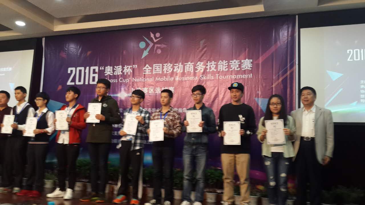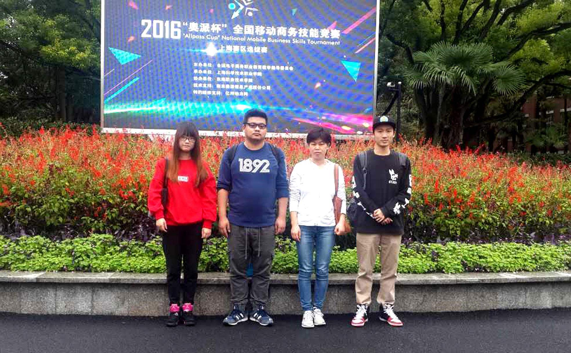 我院陈萍老师、叶素梅老师带领14级物联网应用技术专业诸佳星、许少凡和14级计算机多媒体技术专业吴秋洋三位同学获得2016年”奥派杯”移动商务技能竞赛上海赛区高职组团体三等奖! 陪伴同学们训练参赛的还有我们可爱的指导老师,陈萍老师远隔重洋在线指导同学们训练,叶素梅老师从报名到校内选拔乃至竞赛现场全程陪伴,师生同心共战赛场,才有今天的成绩!让我们祝愿,震旦学子能够再接再厉,获得更好的成绩!(撰稿/摄影 叶素梅)