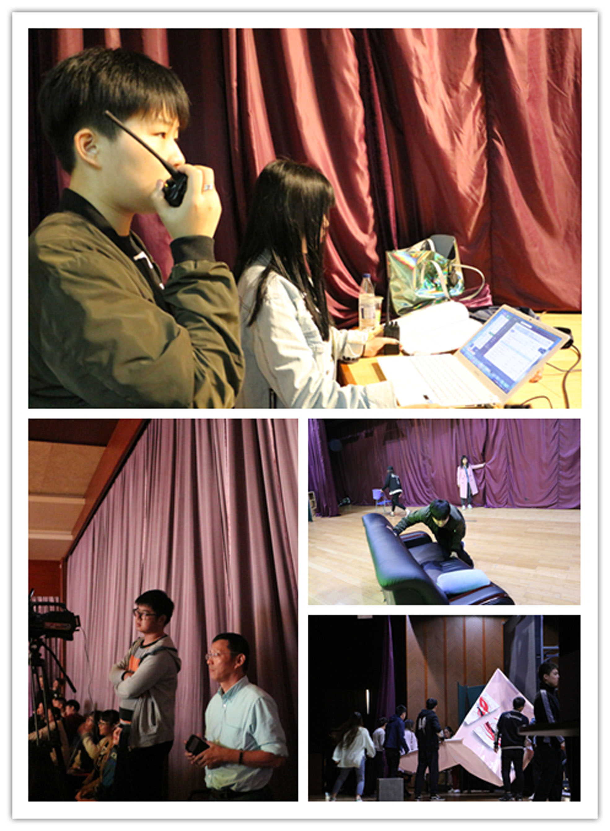 在毕业大戏筹备过程中,全体老师和学生都投入了极大的热情和心血。导演宋艺老师课上课余全身心指导学生排练;胡龙棣、温佐刚、陈晓明等男老师带领学生自己动手在高空进行布景、道具、灯光的设计制作和调试,电教中心的何江南老师加班加点陪同服务,提供技术支持;同学们勤学苦练、用心思考、潜心体会作品内涵和所表现人物的内心世界,全体师生齐心协力才使演出得以圆满顺利地进行。