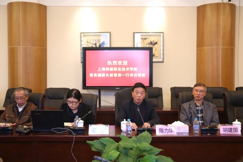 12月7日,上海邦德职业技术学院常务副院长崔智涛、教务科研处处长姚永敬、教务科研处副处长李金河、信息中心主任助理孙峥、后保处蔡柳青老师等一行来我院考察交流,我院院长陈力华、院办副主任罗英姿、教务处副处长张莹、督导办主任胡建国、图文信息中心主任张健在体艺楼国际会议中心参加接见并陪同座谈。