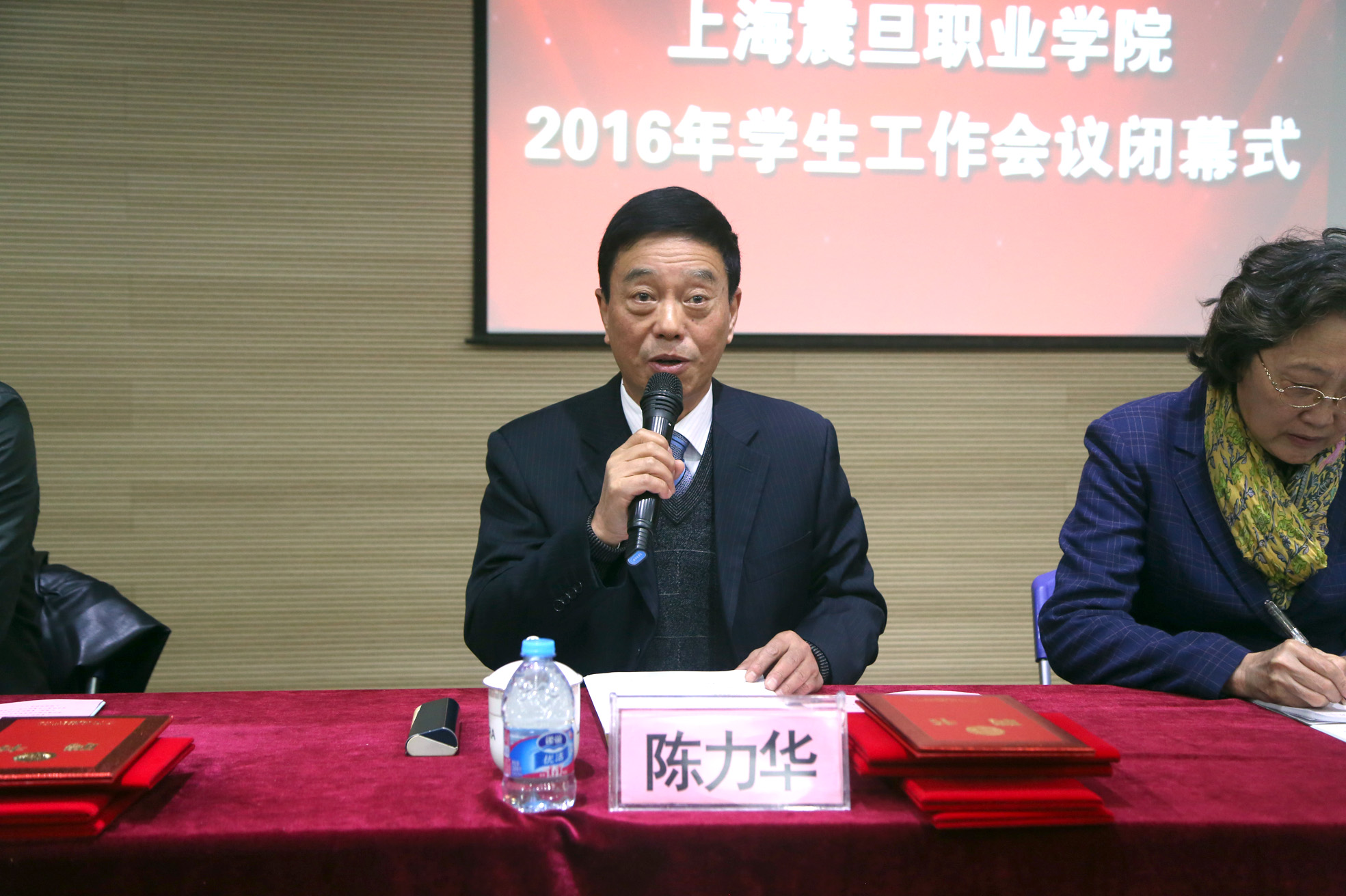 陈力华院长对本届学生工作会议所取得的成果做了充分的肯定。结合全国高校思想政治工作会议相关精神,希望我校的学生管理工作在我院市创建精神文明单位之际,坚持抓好“文明班级”、“文明学生”“文明教师”评选工作,树立“文明震旦”品牌,要求广大教职员工不断提升“教学内涵、文化内涵、品牌内涵”,全面提高人才培养能力,以德立身、以德立学、以德施教,更好地承担起学生健康成长指导者和引路人的责任。