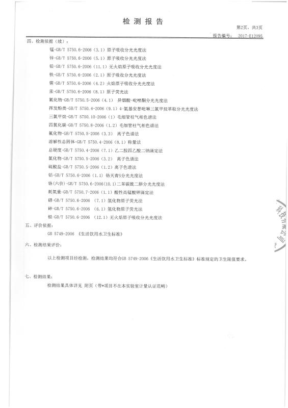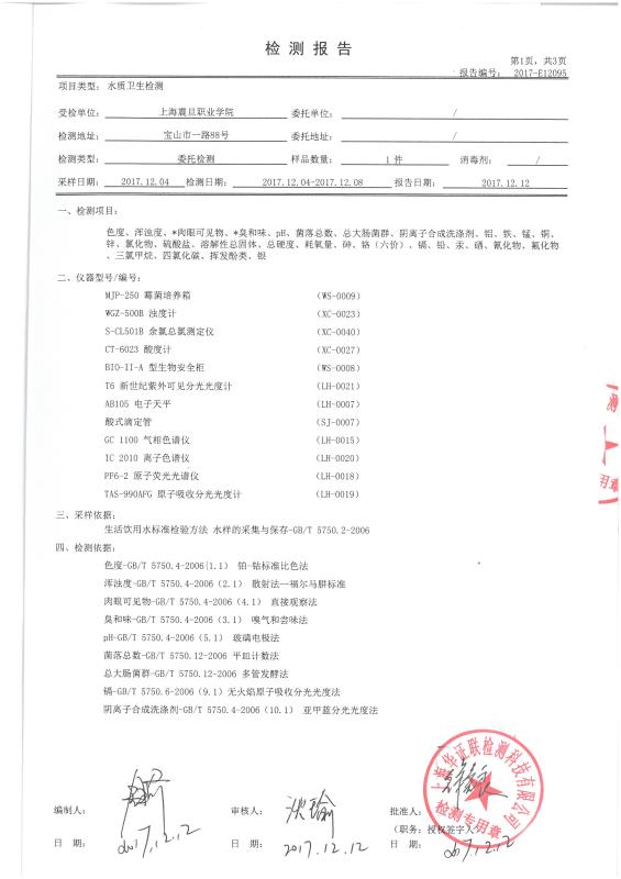 为了保障学校师生饮用水安全问题,由第三方检测单位对我校饮用水按照国家生活饮用水卫生标准进行检测,检测项目多达30项,具体结果公布如下: