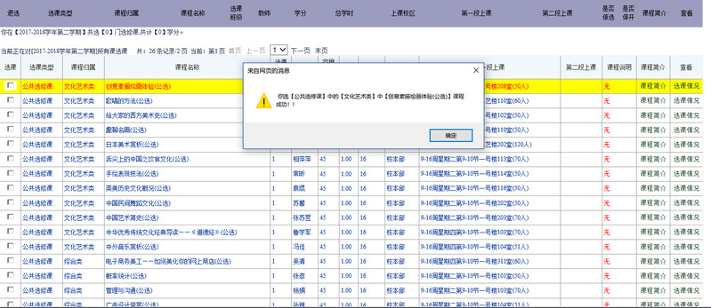 2017-2018学年第2学期课程网上选课即将开始,现将选课安排及有关注意事项通知如下: