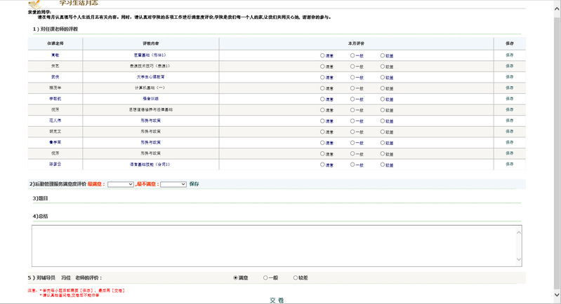 (2)请同学客观、公正的评价每位任课教师,请按照时间节点进行网上评教。凡未参加者,查阅成绩及网上选课权限将受到限制。