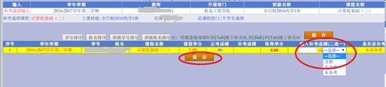 请在“输入补考成绩”中录入该生成绩。(请在下拉窗口中选择“及格”“不及格”“未补考”)