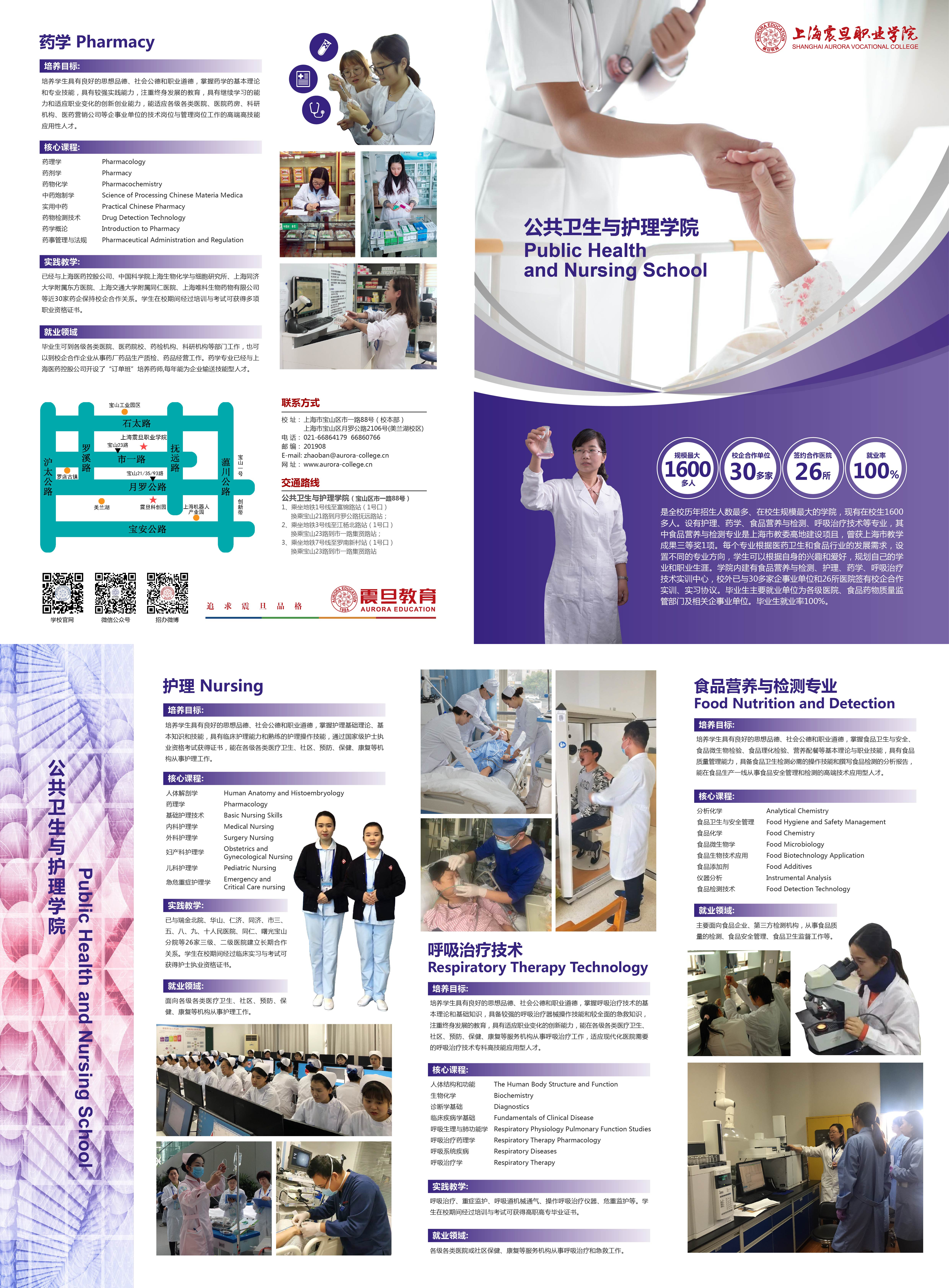 | 公共卫生与护理学院 | 护理、药学、食品营养与检测、呼吸治疗技术 |