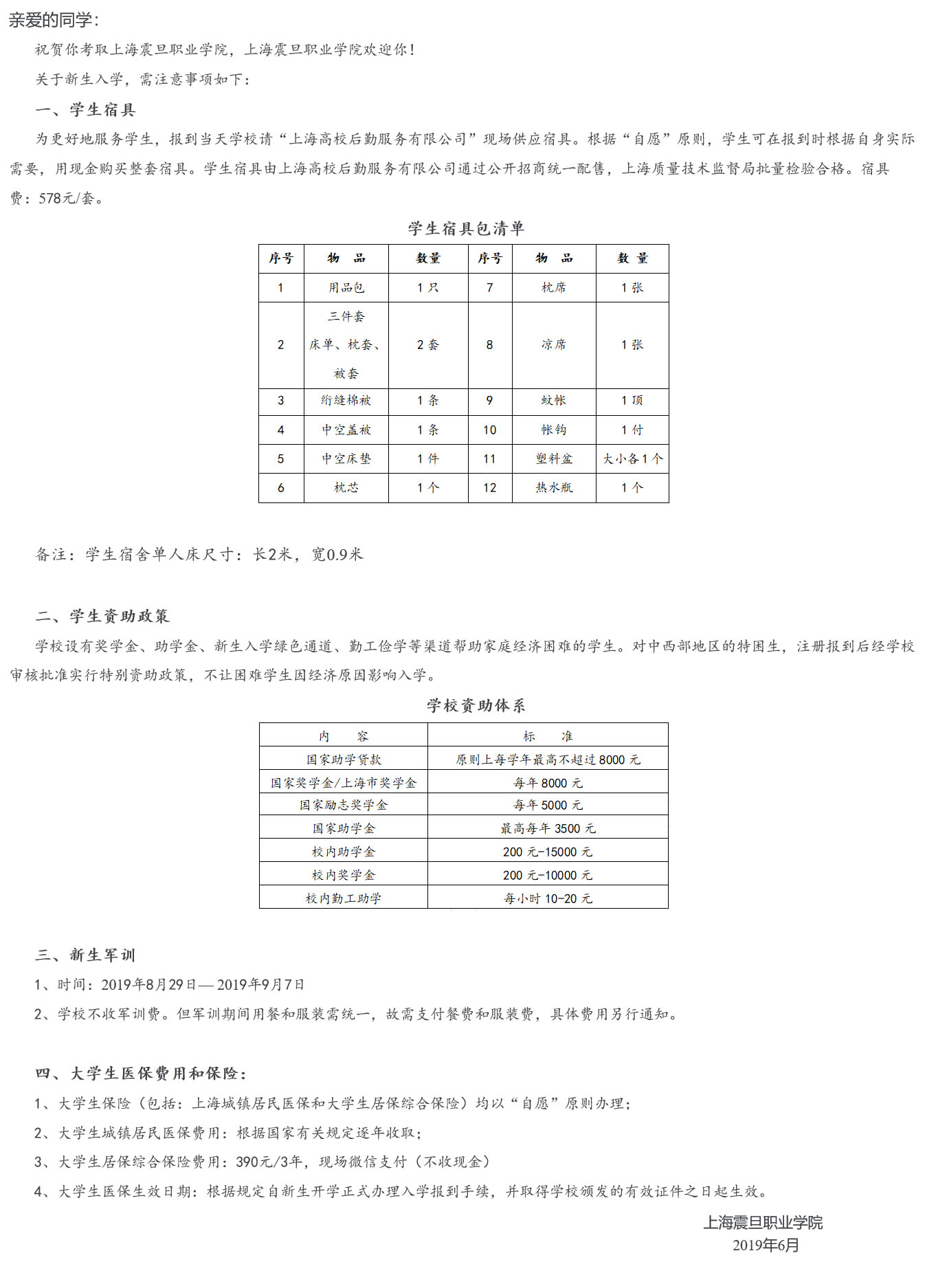 上海生源报到时间:2019年8月28日 (星期三)上午9:00—下午15:00