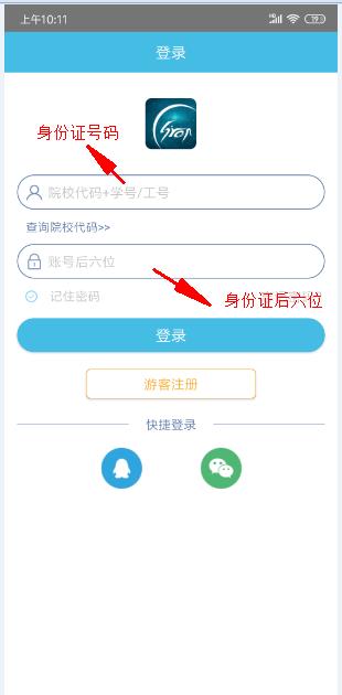 4.使用身份证号登录,密码为身份证号后六位(以 X 结尾的,请大写 X)。