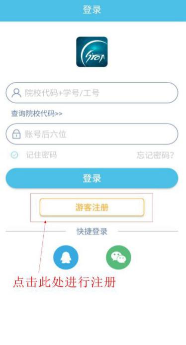 1.打开“翻转校园”APP,点击“游客注册””按钮;
