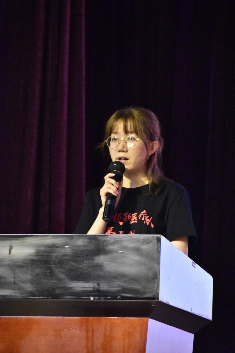 援鄂优秀校友代表张琴琳与我们分享了她的抗疫故事。她说作为第三批援鄂人员能够顺利完成抗疫任务,是大学三年培养了她扎实的专业素养,此次援鄂让她更深刻的理解了白衣天使的责任与使命,她将带着震旦人的初心永远奔驰在路上。