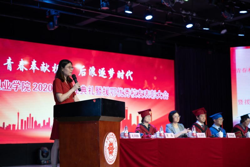 2020年6月29日上午,《青春奉献祖国,后浪逐梦时代—天博com体育网站2020届毕业典礼暨援鄂优秀校友表彰大会》在校大礼堂隆重举行,会议采用线下学生代表参加、线上全程直播的方式举行。震旦教育集团创始人、震旦教育发展基金会理事长张惠莉、名誉校长黄鼎业、校党委书记黄晞建、校长冯伟国等校领导参加会议,上海市民政局基金会处副处长赵卓群被邀请参加表彰大会。各二级学院的院长、教师代表、辅导员、优秀毕业生家长代表、援鄂优秀校友代表以及2020届毕业生参加了毕业典礼暨表彰大会。党委副书记、学工部部长毛燕静主持会议,毕业典礼暨表彰大会在庄严的国歌声中开始。