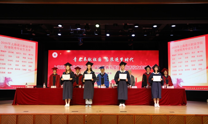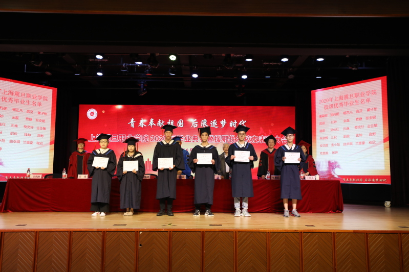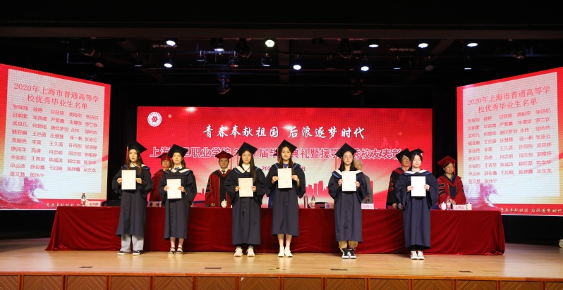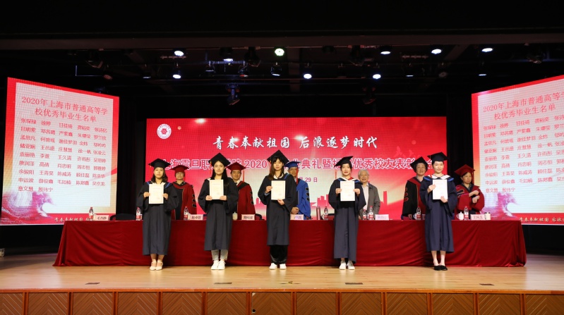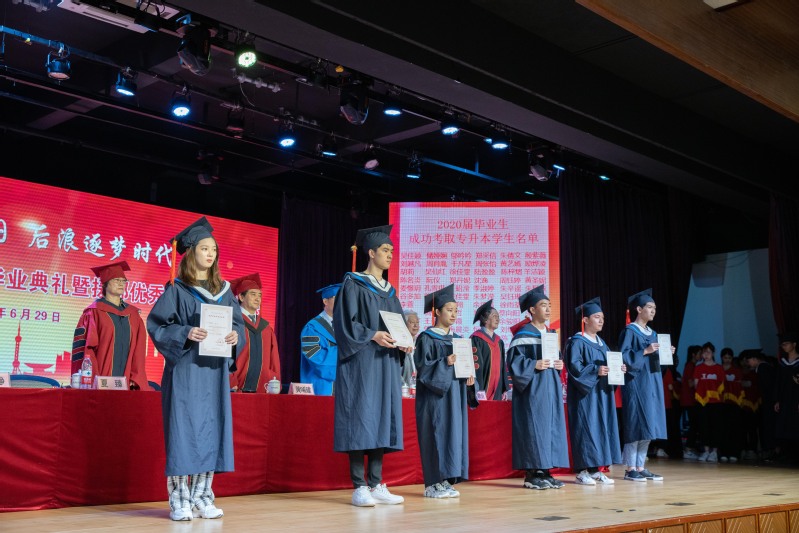 毕业典礼上表彰了“2020年上海市普通高等学校优秀毕业生和天博com体育网站校级优秀毕业生”。党委副书记夏臻宣读了《表彰决定》以及《2020届毕业生中考取全日制专升本学生名单》;上海市高校优秀毕业生代表以及校优秀毕业生代表上台领取了荣誉证书。