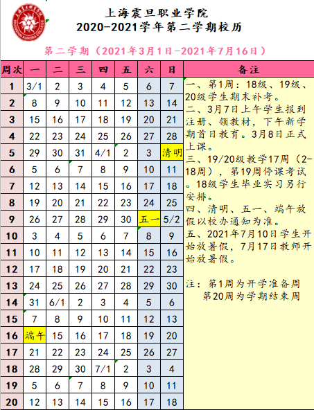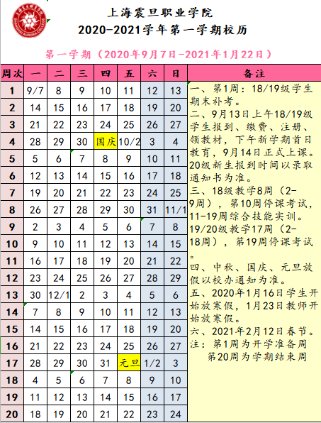 2020-2021学年校历