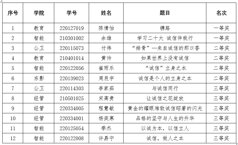 5、“学习二十大,诚信伴我行”诚信教育主题征文比赛