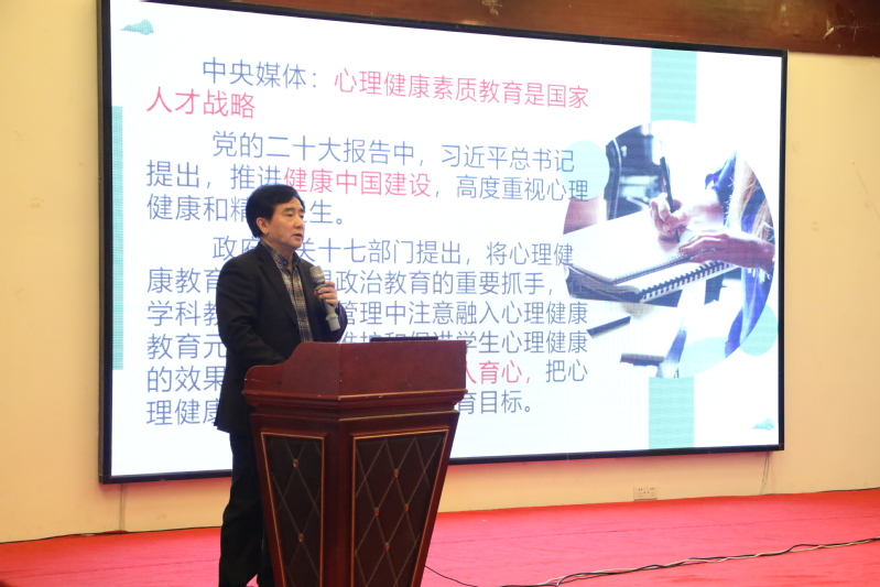 天博com体育网站党委书记、中国心理协会大学生心理咨询委员会副主任黄晞建作《新时代人才强国战略一中国式思想政治心理素质》主题报告。他指出,心理健康教育是践行思政教育的“压舱石”,思政教育是开展心理健康教育的“助推器”。他强调,在新的历史时期,心理健康教育要与时俱进,引导正确价值观,走心理育人与思想政治教育协同创新的特色之路,引导青年大学生形成正确的理想信念、价值观念、道德观念与健康人格,为实现中华民族伟大复兴中国梦而培养时代新人。