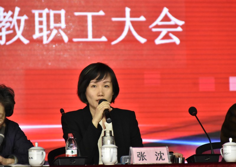 最后,张沈董事长讲话。她强调,新时代赋予新任务,新征程要有新作为,教师要充分发挥积极性、主动性和创造性,更新教育理念,深化教学改革,提高教育教学质量。今年是学校40周年的庆祝之年,希望全体教职工收心聚力、齐心协力,以乘龙之势促进各项工作大提升,在新时代高水平大学建设的新征程中书写辉煌篇章,向校庆40周年献礼。