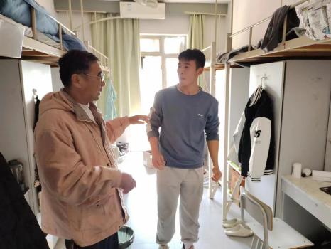 在走访过程中,邓凯院长与同学们细致交流,关心同学们的返校状态,并提醒同学们一要提高个人安全意识,谨防电信诈骗;二要合理规划学习时间,努力提升专业水平;三要保持积极乐观的心态,勇敢面对遇到的挑战。