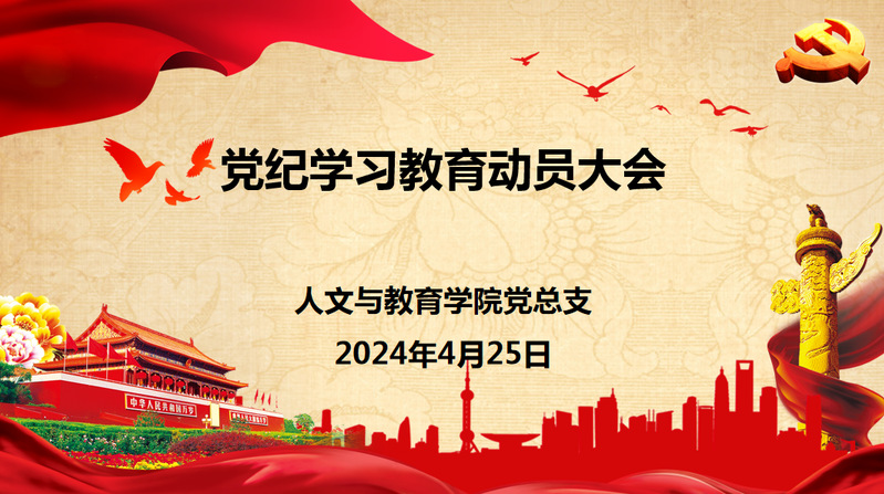 2024年4月25日中午,人文与教育学院党总支召开党纪学习教育动员大会,学院全体师生党员参会。会议由人文与教育学院党总支书记、副院长张石伟主持。会上,张石伟书记向大家传达了校党委关于党纪学习教育的要求,并介绍了党总支的学习计划、安排及要求。张书记强调,党纪学习教育是加强党的建设的内在要求和重要举措,希望全院师生党员同志提高对党纪学习教育的思想认识,明确学习目的及要求,做到学纪、知纪、明纪、守纪,共同营造风清气正的政治生态。
