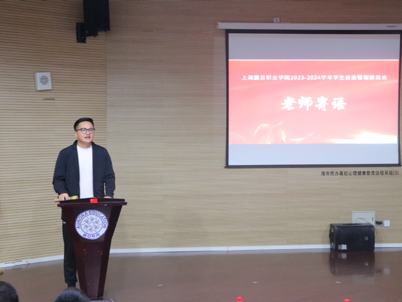 宋浩然老师为自管会送上寄语,对自管会成员和各班班长的相互配合表示感谢和肯定。同时表达了对自管会未来工作的期盼与发展要求,希望自管会的同学们在未来工作中勤奋踏实,敢于逐梦。
