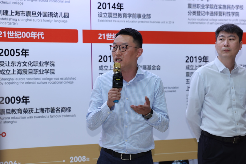 无限极荟购物中心项目总经理齐秉斯致辞。他高度评价了震旦教育的艺术成就和教学成果,并表示无限极荟购物中心将继续加强与震旦教育的合作,共同推动艺术教育事业的进步。
