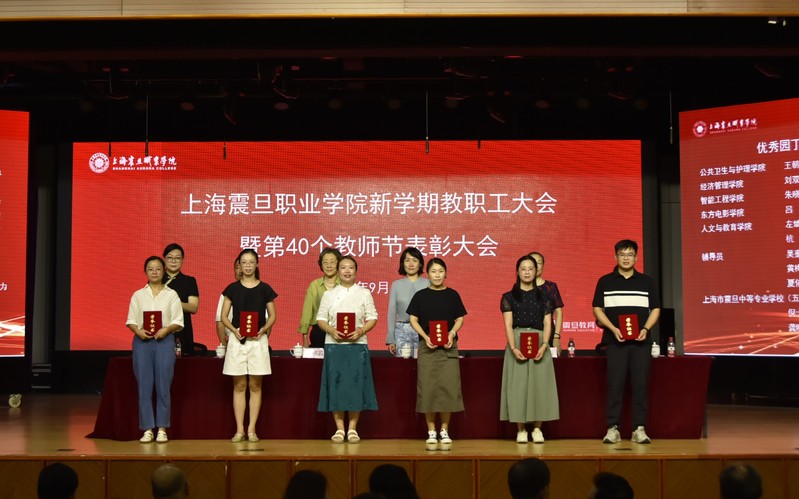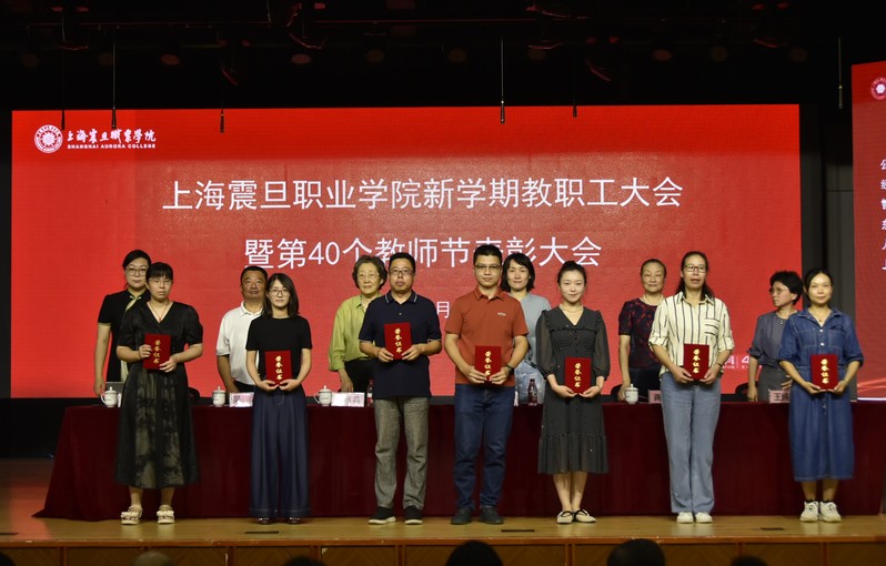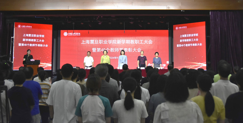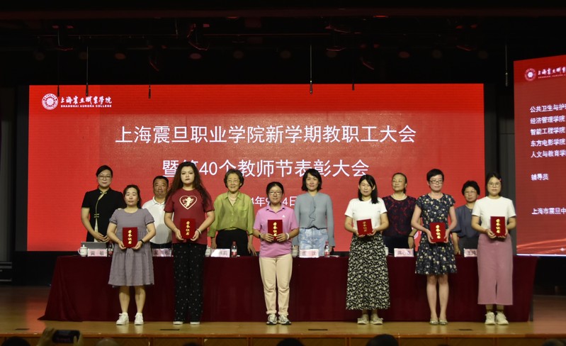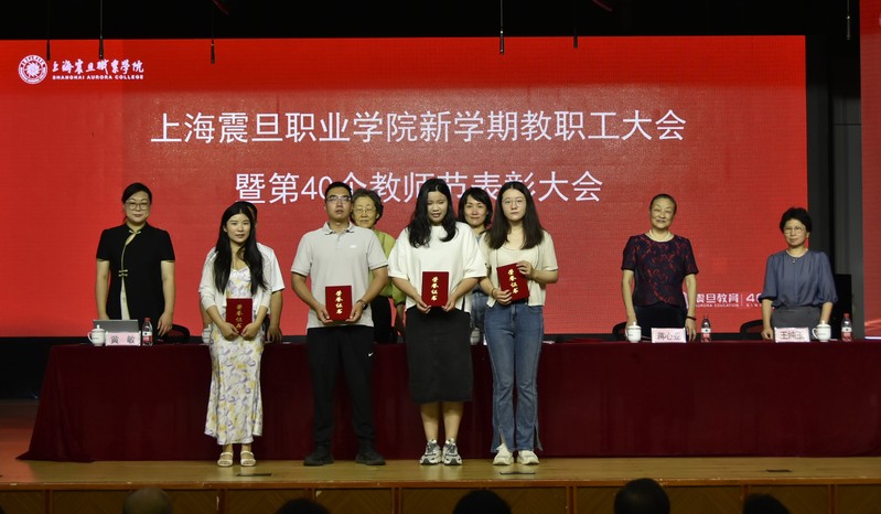 9月4日上午,上海震旦职业学院第40个教师节表彰大会暨新学期教职工大会在校大礼堂隆重召开。震旦教育集团创始人、管委会主任张惠莉,震旦教育集团董事长张沈,震旦职业学院党委书记吴松,校长蒋心亚,党委副书记黄敏,副校长王纯玉等领导出席大会,天博com体育网站全体教职工参加会议。大会由黄敏主持。