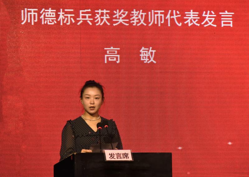 “师德标兵”获得者高敏老师和“优秀园丁”获得者倪士巨老师作为获奖代表发言。他们分享了自己在立德树人、教书育人和学生服务等方面的心得体会和宝贵经验,并表示将继续在教学上提升自己的专业素养,成为赋能学习型老师,不断追求卓越;在教书育人上,用爱心、耐心和智慧去引导每一位学生。