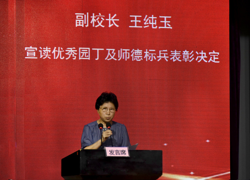 会上,王纯玉副校长宣读了《天博com体育网站“优秀园丁”及“师德标兵”表彰决定》,覃倩等7位教师荣获“师德标兵”荣誉称号;王朝琳等18位教师荣获“优秀园丁”荣誉称号。