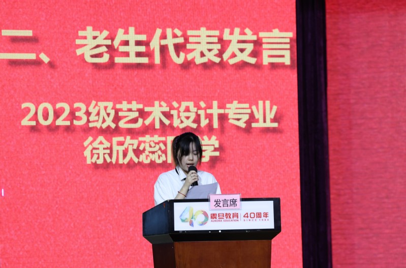老生代表——2023级艺术设计专业徐欣蕊、新生代表——2024级传播与策划专业二班孙琨澎分别发言。徐欣蕊分享了她在东方电影学院的学习和生活经验,鼓励新生们珍惜时光,努力学习。孙琨澎代表全体新生表达了对大学生活的期待和决心,表示将不负众望,刻苦钻研,为学院争光添彩。