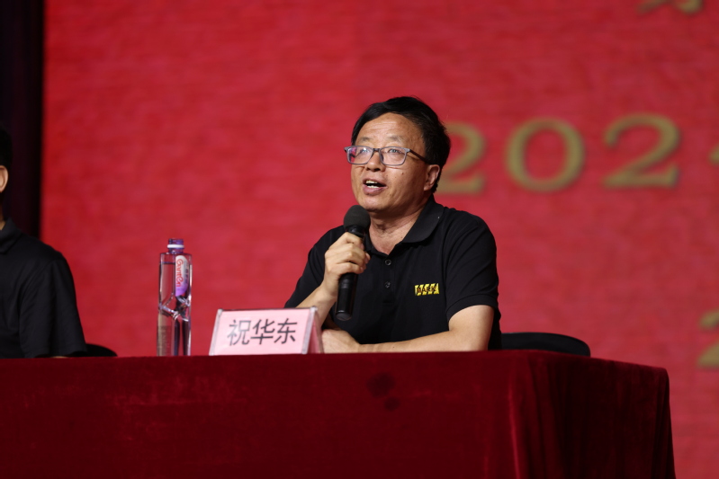 祝华东副院长介绍了东方电影学院的发展历程、专业建设、教学改革及产教融合所取得的成果,分享了师生近期取得的成就。他以“明确目标、肩负担当、练就技能”三句话激励新生,强调设定目标、承担责任和提升技能的重要性。他鼓励新生勇敢面对机遇与挑战,设定清晰目标,肩负学习重任、社会责任及民族复兴使命,专注专业技能培养,提升职场竞争力,书写精彩人生篇章。