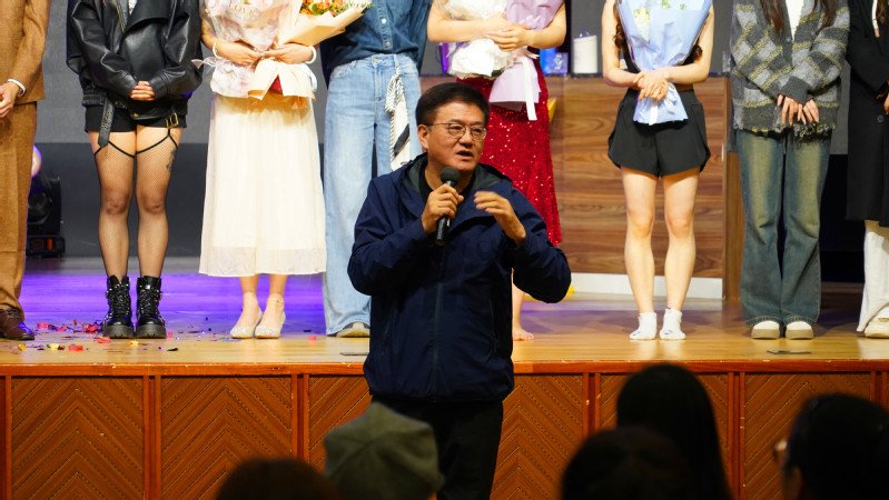 演出结束后,东方电影学院院长郜明讲话。他首先祝贺大戏演出成功,并向全体演职人员表示衷心的感谢。希望同学们能够继续保持对戏剧影视表演专业的热爱和追求,在未来的道路上取得更大的成绩。他希望校企合作单位借此选才用才,为推动校企合作和学生就业发挥的积极作用。